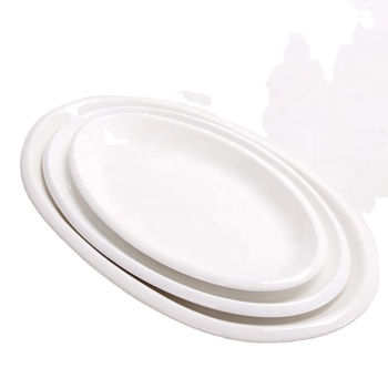 Vajilla de restaurante de fabricación, plato de cena ovalado de melamina de plástico blanco grande de 12 pulgadas