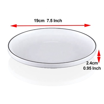 Vajilla de restaurante al por mayor plato de melamina con borde negro para servir postres y aperitivos de 7,5 pulgadas