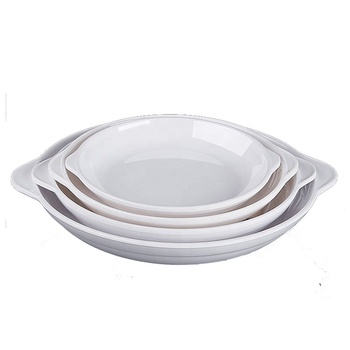 Vajilla de restaurante que sirve plato de cena profundo de melamina blanca a granel barato de 9,7 pulgadas con dos asas