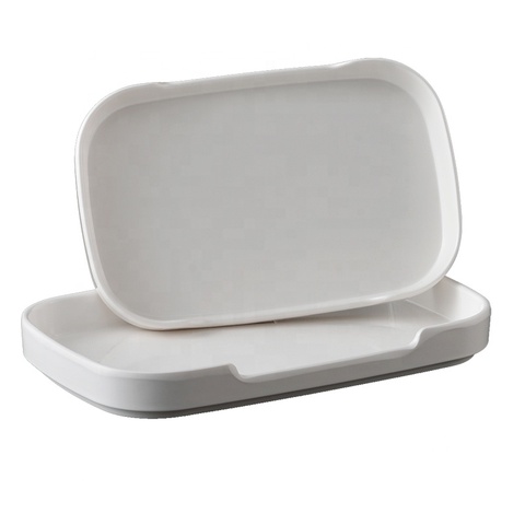 Grand plateau de service en plastique blanc rectangulaire en mélamine vaisselle de bar de restaurant écologique personnalisée