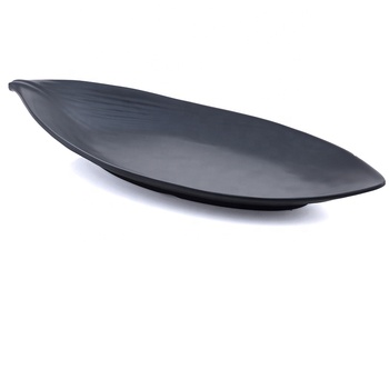 Assiette à sushi en mélamine en forme de feuille noire mate de vaisselle de restaurant japonais incassable