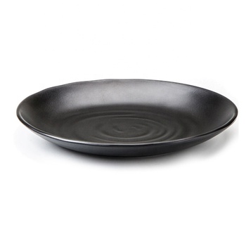 Vaisselle de restaurant moderne en gros, incassable, assiette ronde en mélamine noire mate de 8 pouces
